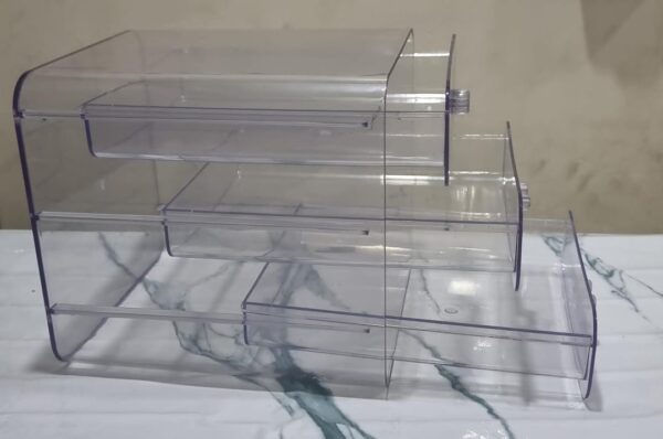 Say goodbye to clutter and hello to elegance! This sleek clear acrylic storage box is designed with 3 spacious drawers, making it the perfect solution for organizing your cosmetics, jewelry, or daily essentials while keeping everything visible and within reach.