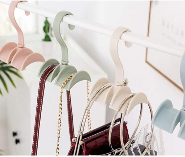 Organize your space effortlessly with the 360° Rotating 2-Way Bag Hanger, now available in cream. Ideal for handbags, backpacks, or accessories – smart, stylish, and space-saving!