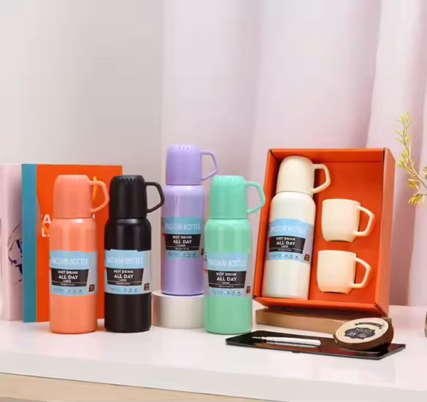 Stylish 450ml thermocup with 3 matching cups in a sleek red gift box—now available in elegant black. Perfect for thoughtful and practical gifting.