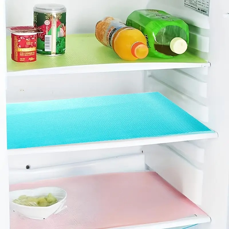 Upgrade your fridge organization with this set of 4 PVC fridge mats, designed to combine protection, hygiene, and style. Made from durable, non-slip PVC, these mats prevent items from sliding, absorb spills, and keep shelves and drawers clean. Their flexible, easy-to-cut design allows them to fit perfectly in any fridge compartment, making organization effortless and stress-free.