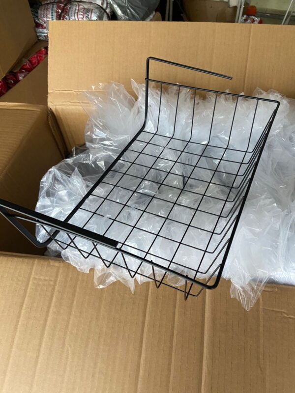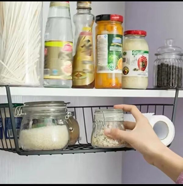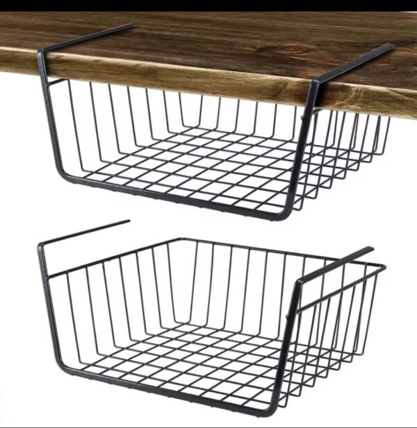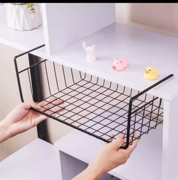 Organize your home with this 1pc Hanging Net Basket, designed to combine style, durability, and convenience. Made from sturdy iron and finished in sleek black, it can be hung under cabinets, on walls, or inside wardrobes to create additional storage space. Its large capacity allows you to store kitchen tools, household items, or small clothing accessories efficiently, keeping your space tidy and clutter-free.
