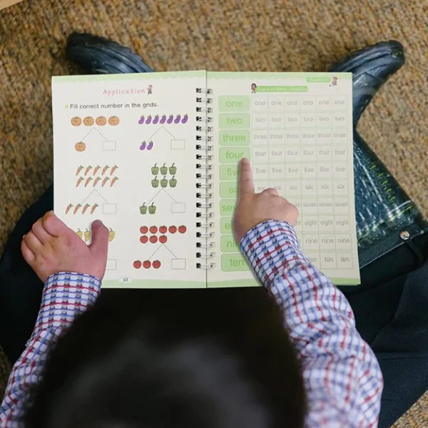 Reusable Magic Ink – Handwriting disappears automatically, so kids can reuse the books again and again!