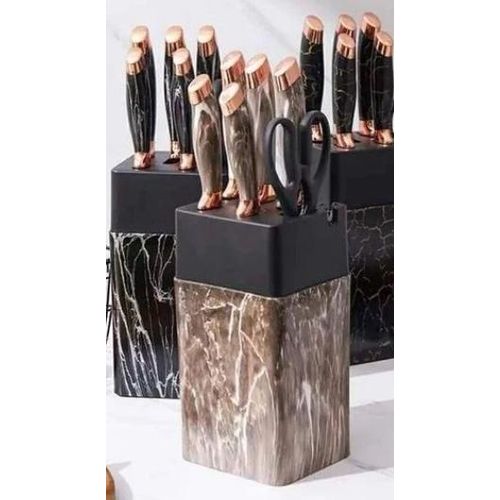 Bring both elegance and efficiency to your kitchen with this marble-profile knife set, designed for home cooks who appreciate quality and convenience. Housed in a sleek block stand with a built-in sharpener, this set ensures your knives stay razor-sharp and ready for every slice, dice, and chop.