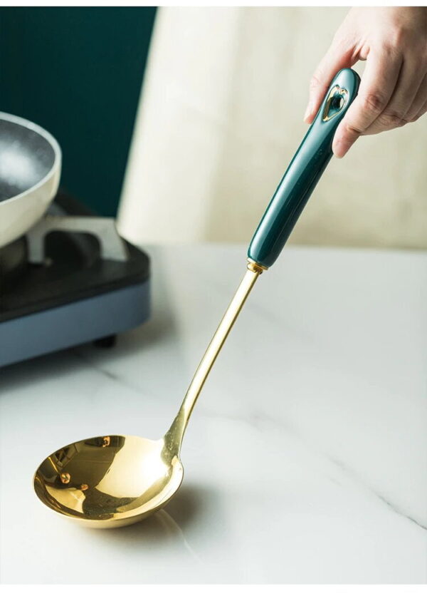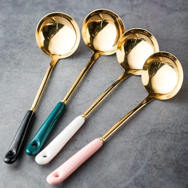 High-Quality Nordic Luxury Gold Serving Soup Spoon with Ceramic Handle – Elegant Tableware in 4 Stunning Colours