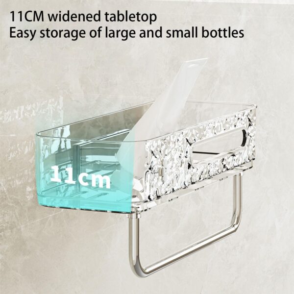 Widespread Capacity: Designed with an 11cm widened tabletop to easily accommodate both large and small bottles, from bulky shampoos to delicate skincare.
