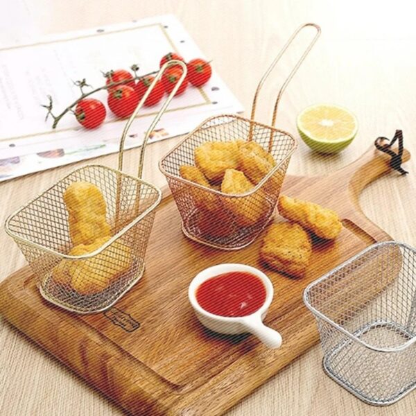 Serve your snacks with style! This big-sized stainless steel fry basket is perfect for fries, nuggets, onion rings, or any fried treats, adding a touch of elegance to your kitchen or dining table.