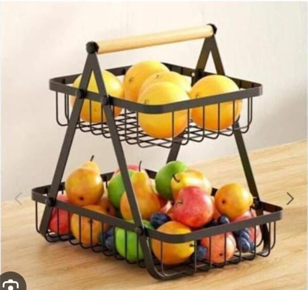Triangular 2 layer 2 tier metallic mesh fruit basket
